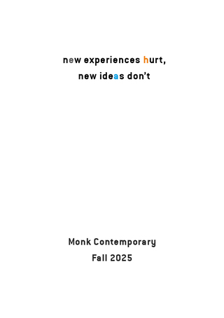 Monk Contemporary dedicates the fall of 2025 to the experience and its groundless intensities. The experience doesn’t repeat what you already know, but evokes an epiphany that ask for a new self-ascription.